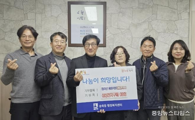 (중앙뉴스타임스 = 방재영 기자) 수원시 장안구 송죽동은 지난 15일 삼성전자 구매OB회와 함께하는 ‘청소년 용돈지원사업’ 후원금 전달식을 개최했다고 밝혔다.