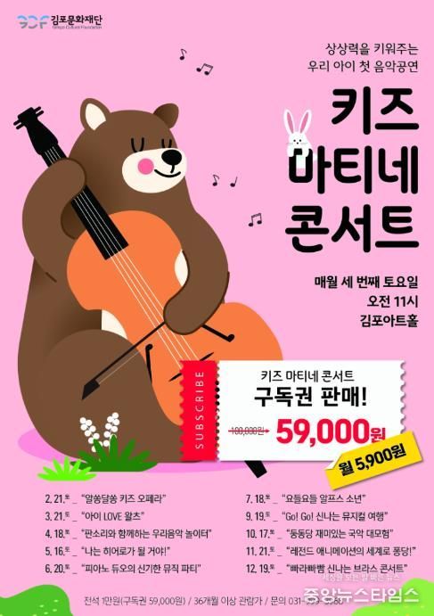 (중앙뉴스타임스 = 이광운 기자) (재)김포문화재단은 2025년도 객석점유율 99%, 2024~2025 2년 연속 관객만족도 98점을 달성한 '키즈 마티네 콘서트'를 2026년에도 연속하여 개최한다고 16일 밝혔다.