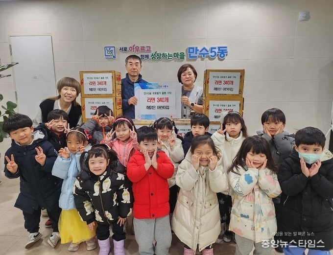 (중앙뉴스타임스 = 방재영 기자) 인천 남동구 만수5동 행정복지센터는 해맑은어린이집(원장 이향미)로부터 라면 340개를 기탁받았다고 16일 밝혔다.