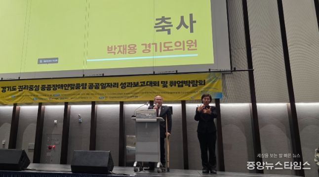 (중앙뉴스타임스 = 방재영 기자) 경기도의회 보건복지위원회 박재용 의원(더불어민주당, 비례)은 16일 수원컨벤션센터에서 열린 ‘2025년 경기도 권리중심 중증장애인맞춤형 공공일자리 성과보고대회 및 취업박람회’에 참석해 축사를 전하고, 중증장애인의 노동권 보장과 권리중심 공공일자리 정책의 지속적인 발전 필요성을 강조했다.