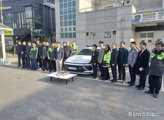 (중앙뉴스타임스 = 방재영 기자) 포천동 자율방범대는 지난 17일 포천파출소 앞에서 순찰차량의 무사고 운행과 대원들의 안전한 활동을 기원하는 ‘순찰차량 안전기원제’를 개최했다.