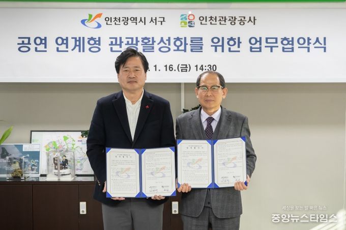 (중앙뉴스타임스 = 방재영 기자) 인천 서구는 지난 16일 인천관광공사(사장 유지상)와 ‘공연 연계형 관광 활성화를 위한 업무협약’을 체결했다고 밝혔다.