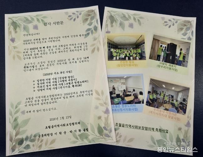 (중앙뉴스타임스 = 방재영 기자) 광주시 초월읍 지역사회보장협의체는 2025년 한 해 동안 지역 내 어려운 이웃을 위해 나눔을 실천한 후원자 145명에게 감사의 마음을 담은 서한문을 발송했다고 19일 밝혔다.