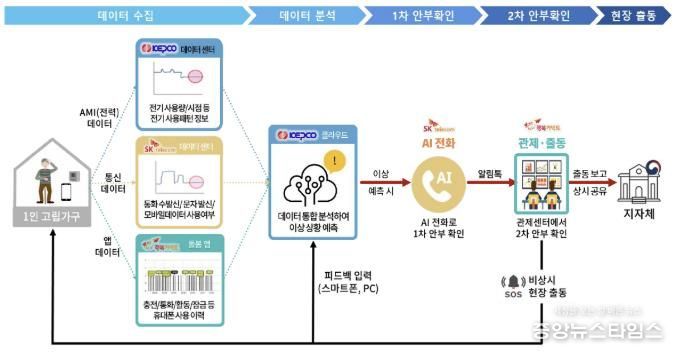 이 서비스는 한국전력공사, SK텔레콤, 행복커넥트가 함께 참여한다. 1인 가구에서 일정 기간 휴대폰 통신기기의 전기 사용량 변화가 감지되지 않으면 이상 상황으로 판단하고 단계별 확인 절차에 들어간다.