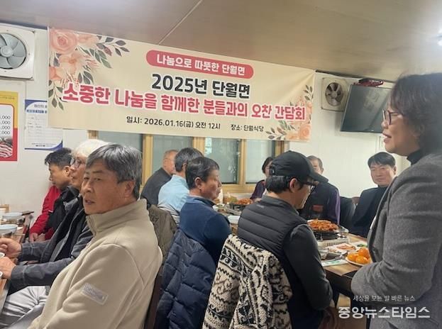(중앙뉴스타임스 = 방재영 기자) 양평군 단월면은 지난 16일 단월면 단월식당에서 2025년 한 해 동안 현금 및 현물 기부로 지역사회 나눔에 앞장선 기부자들을 초청해 감사의 마음을 전하는 오찬 간담회를 개최했다.