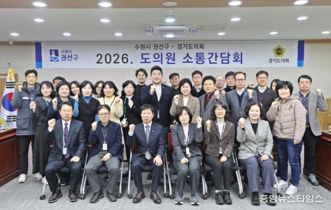 이날 간담회에는 구청 간부공무원과 경기도의회 황대호 문화체육관광위원장, 이애형 교육행정위원장, 문병근 의원, 장한별 의원 등 권선구 지역 도의원들이 참석했으며, 2026년 상반기 특별조정교부금 필요사업 설명, 주요 건의사항 청취 및 구정 발전 방안 논의 순으로 회의가 진행됐다.