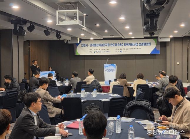 인천시는 19일 오라카이 송도 파크 호텔에서 ‘반도체 연구개발(R&D) 지원사업 성과 발표회’를 개최했다. 이번 행사는 2025년 한 해 동안 인천시와 한국생산기술연구원이 공동으로 추진한 반도체 연구·개발 협력 지원사업의 성과를 공유하고 앞으로의 정책 방향을 논의하기 위해 마련됐다.