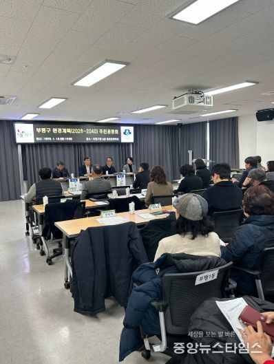 (중앙뉴스타임스 = 방재영 기자) 인천 부평구는 19일 구청에서 ‘부평구 환경계획(2026~2040)’ 수립을 위한 주민공청회를 개최했다.