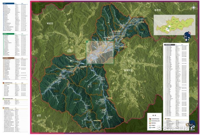 지도에는 홍천읍 행정리 경계를 중심으로 관공서와 교육시설, 재난 대피시설, 마을회관, 경로당, 무인민원발급기 위치 등 마을별로 필요한 주요 행정정보를 함께 표시해 주민 활용도를 높였다.