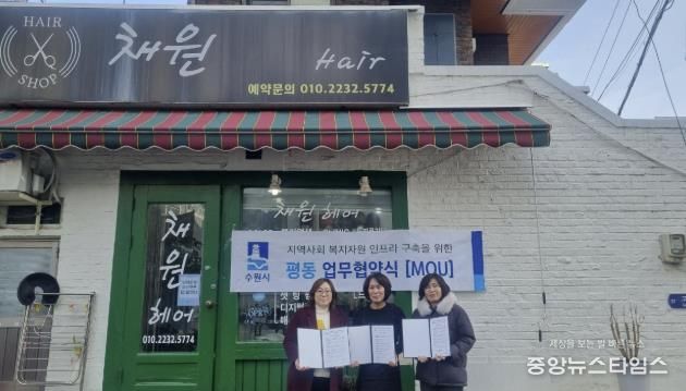 (중앙뉴스타임스 = 방재영 기자) 수원시 권선구 평동 행정복지센터와 평동 지역사회보장협의체는 19일 채원헤어(대표 김명희)와 ‘저소득 노인을 위한 무료 이미용 서비스 지원 업무협약’을 체결했다.