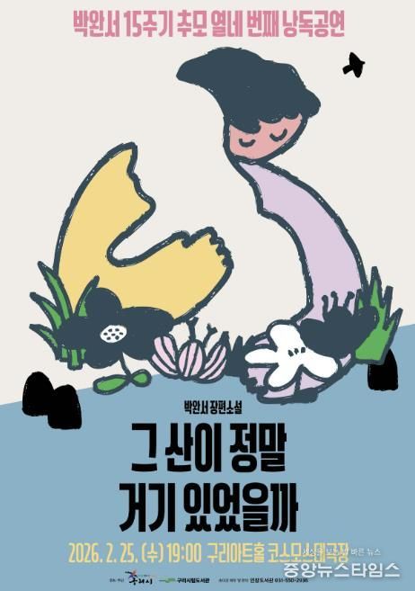 (중앙뉴스타임스 = 이광운 기자) 구리시는 박완서 작가 타계 15주기를 맞아 작가의 문학세계와 업적을 되새기고 그 의미를 시민과 함께 나누고자, 오는 2월 25일 오후 7시 구리아트홀 코스모스 대극장에서 추모 낭독 공연을 개최한다고 밝혔다.