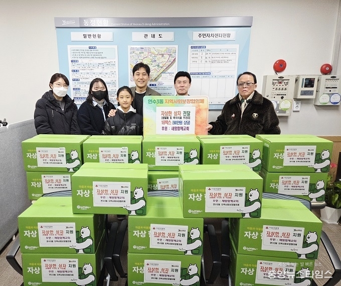 (중앙뉴스타임스 = 방재영 기자) 인천 연수구 연수3동 지역사회보장협의체(위원장 윤성연·김재식)는 지난 19일 새맘함께교회(담임목사 김문길)로부터 생필품 꾸러미와 식료품으로 구성된 ‘자상한 상자’ 18박스를 전달받았다.