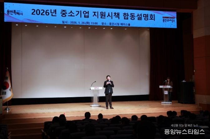 (중앙뉴스타임스 = 방재영 기자) 용인특례시는 20일 시청 에이스홀에서 지역 내 중소기업 지원 정책을 설명하는 ‘2026년 중소기업 지원시책 합동설명회’를 열었다.