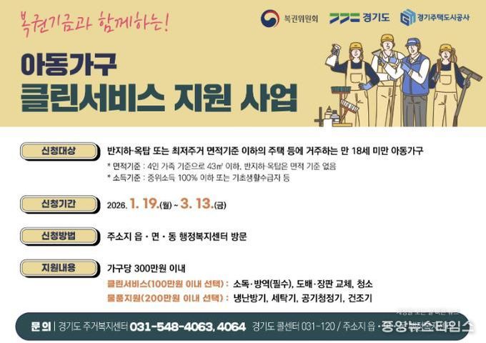 지원 대상은 최저주거기준 미달 주택 또는 반지하·옥탑 등 열악한 주거환경에 거주하는 만 18세 미만 저소득 아동 가구다.