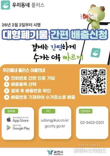 (중앙뉴스타임스 = 방재영 기자) 과천시는 시민 편의를 높이기 위해 오는 2월 2일부터 대형폐기물 온라인·모바일 배출 시스템을 본격 운영한다고 밝혔다.