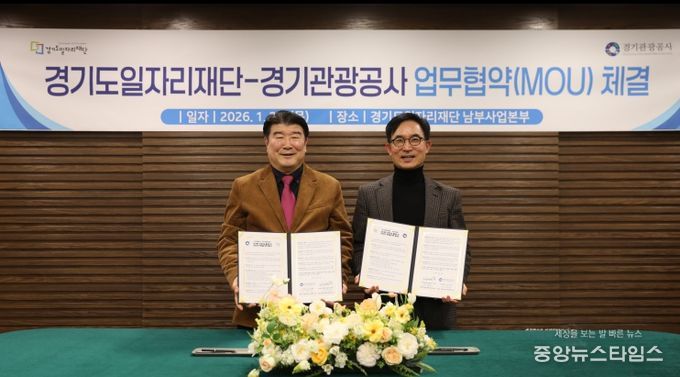(중앙뉴스타임스 = 방재영 기자) 경기도일자리재단과 경기관광공사는 22일 경기도일자리재단 남부사업본부에서 ‘경기북부 관광 활성화 및 유연근무 확산을 위한 업무협약(MOU)’을 체결했다.