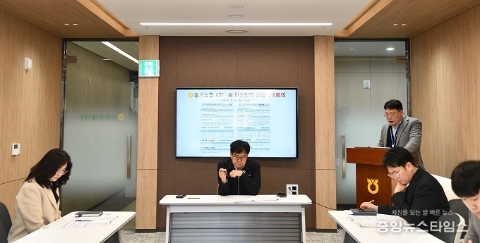 경기농협은 26일 신청사 회의실에서 ASF 확산에 따른 긴급방역 대책회의를 개최했다.