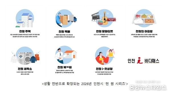 (중앙뉴스타임스 = 방재영 기자) 천 원으로 충분한 도시, 인천. 인천시의 민생 혁신 정책, ‘천원 시리즈’가 2026년 새로운 영역으로 확장된다.