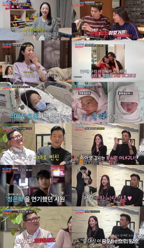 (중앙뉴스타임스 = 방재영 기자) TV CHOSUN 극사실주의 다큐 예능 ‘조선의 사랑꾼’에서 45세에 둘째를 임신한 아나운서 박은영의 출산 과정을 공개했다. 박은영은 출산 전 정주리·제이쓴과 만나 29금 토크로 웃음을 자아냈다. 또한, 류시원 부부는 윤정수♥원진서 부부와 만나 솔직한 속내를 털어놓으며 친목을 다졌다. 이날 방송 전국 시청률은 2.9%, 분당 최고 시청률은 3.8%(닐슨코리아, 전국 기준)를 기록하며 종편 예능 시청률 1위를 차지했다.