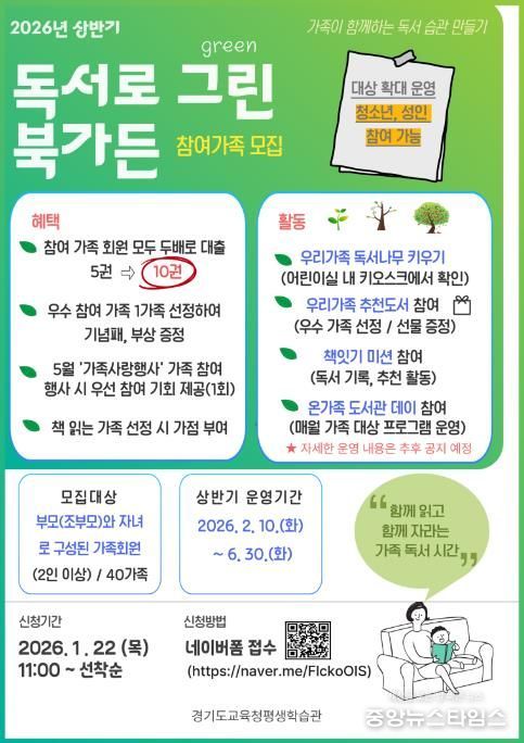 류영신 경기도교육청평생학습관장은 “이번 프로그램을 통해 가정 내 독서 문화가 자연스럽게 확산되고 책을 중심으로 한 소통과 활동을 통해 가족 간 유대감이 한층 강화되기를 기대한다”고 말했다.