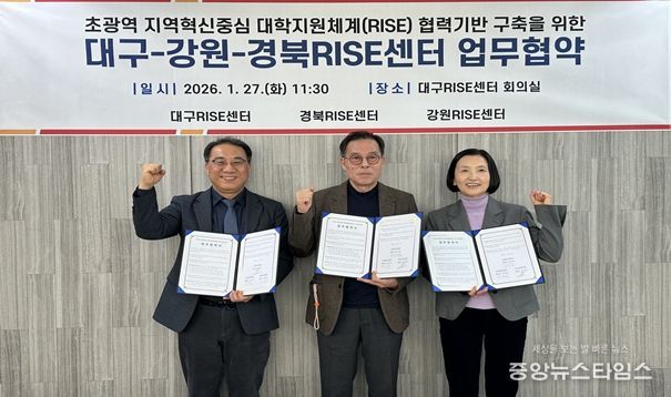 이번 협약은 정부의 5극 3특 성장전략에 발맞춰 ▲강원-대구-경북 간 초광역 RISE 사업 발굴 및 협업 강화 ▲지역정주·취업 등 RISE 성과제고를 위한 권역 간 연계 협력 강화를 목적으로 추진됐다. 특히 강원 중심의 RISE사업을 초광역 대경권(대구·경북)까지 확장했다는 점에서 의미가 크다.