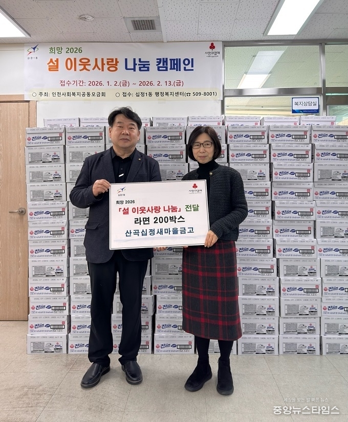 (중앙뉴스타임스 = 방재영 기자) 인천 부평구 십정1동은 27일 산곡십정새마을금고로부터 ‘설 이웃사랑 나눔’ 성품으로 라면 200박스를 기탁받았다.