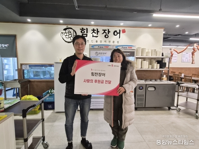 (중앙뉴스타임스 = 방재영 기자) 힘찬장어(대표 우성태)는 지난 23일 사랑의 후원금 20만원을 시흥시1%복지재단에 기부하는 전달식을 진행했다.