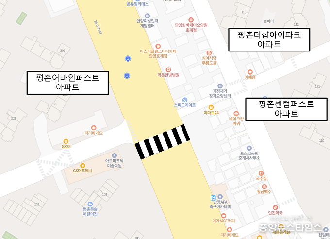 이번 횡단보도 설치로 평촌어바인퍼스트 아파트 주민은 물론, 호계시장과 대중교통을 이용하는 인근 주민들의 보행 불편이 크게 개선될 것으로 기대된다.
