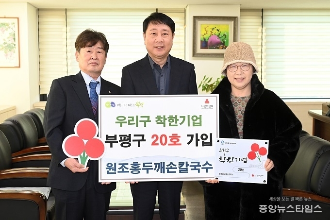 (중앙뉴스타임스 = 방재영 기자) 인천 부평구는 3일 원조홍두깨손칼국수가 ‘우리구 착한기업’ 부평구 제20호로 가입했다고 밝혔다.