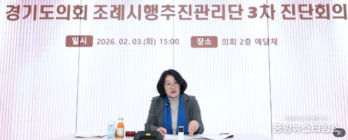 (중앙뉴스타임스 = 방재영 기자) ‘경기도의회 조례시행추진관리단’ 공동단장을 맡고 있는 경기도의회 교육기획위원회 신미숙 의원(더불어민주당, 화성4)은 3일(화), 경기도의회 예담채에서 열린 조례시행추진관리단 제3차 진단회의에 참석하여 회의를 주재했다.