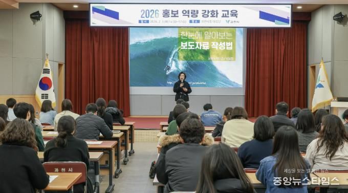 (중앙뉴스타임스 = 방재영 기자) 과천시는 지난 3일 시청 대강당에서 직원 100여 명을 대상으로 ‘2026년 홍보 역량 강화 교육’을 진행했다고 밝혔다.