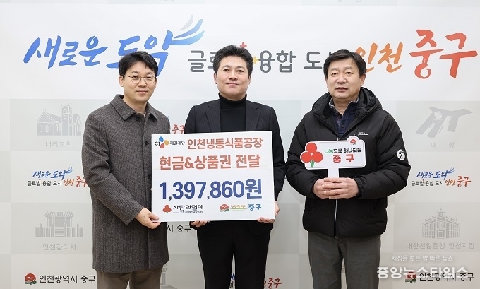 (중앙뉴스타임스 = 방재영 기자) 인천 중구는 ‘CJ제일제당㈜ 인천냉동식품공장(공장장 전은영)’이 민족의 큰 명절인 설을 맞아 지역 취약계층을 돕고자 총 139만 7860원 상당의 현금과 온누리상품권을 기탁했다고 4일 밝혔다.