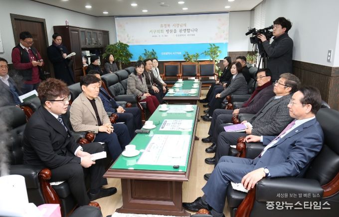 (중앙뉴스타임스 = 방재영 기자) 인천광역시 서구의회 송승환 의장은 2월 5일 서구의회를 방문한 유정복 인천광역시장과의 면담 자리에서, 분구 관련 예산 부족 문제와 인사 갈등 우려를 전달하며 인천시 차원의 적극적인 지원과 협조를 요청했다.