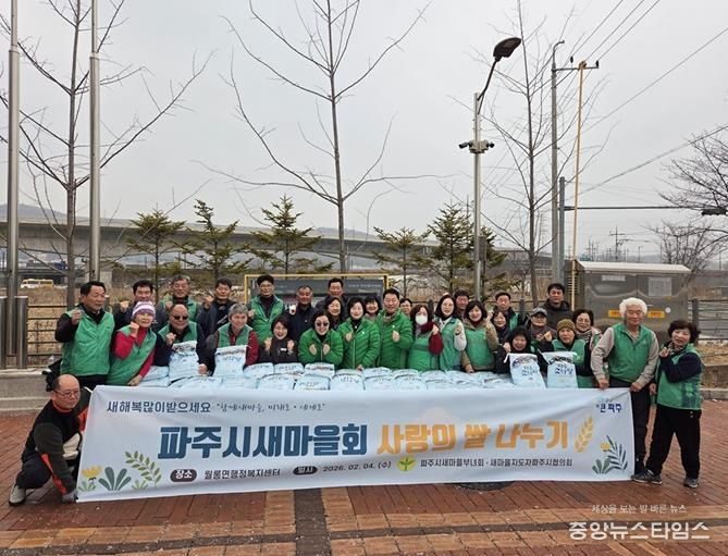 (중앙뉴스타임스 = 방재영 기자) 파주시새마을회는 다가오는 설 명절을 앞두고 지난 4일 월롱면 행정복지센터에서 ‘사랑의 쌀 나누기’행사를 개최하며 지역 내 이웃들에게 온정을 전했다.