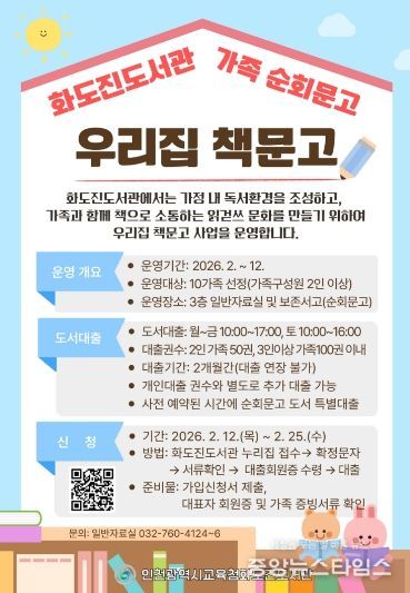 화도진도서관 관계자는“가족이 함께 책을 읽고 소통하는 독서 환경을 만들고자 한다”며 “앞으로도 시민의 일상에 책이 스며들도록 다양한 서비스를 확대하겠다”고 밝혔다.