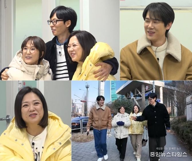 송은이, 김숙은 자타공인 유재석의 30년 지기 절친. 유재석이 “송사루~”라며 친근한 별명으로 맞이하자, 송은이는 “메뚝 선배면 무조건 와야지”라며 걸걸한 인사로 받아치고, 김숙은 “아침엔 조째즈, 저녁엔 전현무입니다”라며 자기소개에 나서 폭소를 유발한다. 유연석이 송은이, 김숙의 여유만만한 모습에 “예능 왕작가님과 세컨 작가님을 보는 것 같다”라며 놀리자, 두 사람은 기다렸다는 듯 예능계 터줏대감 콩트를 시전하며 자연스럽게 유연석을 콩트에 끌어들인다. 이에 유연석까지 ‘개그맨 3형님’ 유재석, 송은이, 김숙의 시도 때도 없는 개그 본능에 스며들어 버리고, 급기야 개그 유행어를 선보이는가 하면, 김숙에게 “형!”이라며 거리낌 없는 호칭으로 불러 형님들을 빵 터지게 한다.