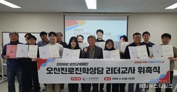 이번에 위촉된 리더교사들은 2026년 한 해 동안 오산 지역 청소년의 진로·진학 성장을 지원하는 전문 인력으로 활동하게 되며, 재단은 이를 통해 학생 개개인의 진로 탐색부터 진학 준비까지 체계적인 맞춤형 지원을 제공할 계획이다.