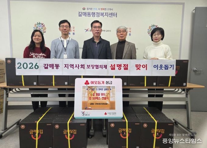 (중앙뉴스타임스 = 방재영 기자) 구리시 갈매동 행정복지센터는 지난 6일 설 명절을 앞두고 갈매동 지역사회보장협의체가 지역 내 어려운 이웃을 돕기 위해 김 50박스를 후원했다고 밝혔다.