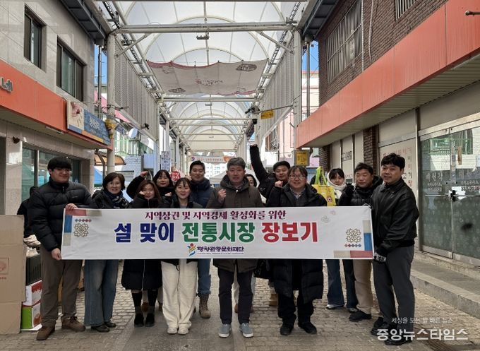 (중앙뉴스타임스 = 방재영 기자) (재)평창관광문화재단(이사장 심재국) 직원들은 지난 9일 대화전통시장에서 설 맞이 전통시장 장보기 행사를 실시했다.