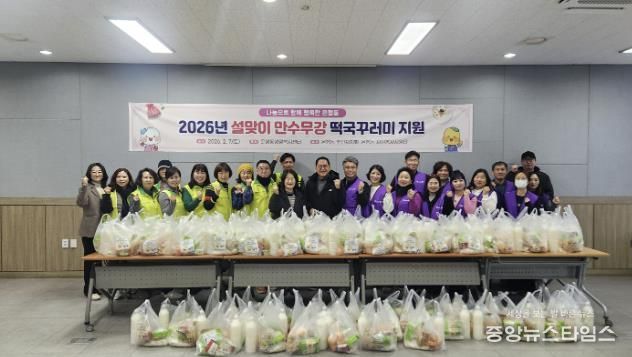 (중앙뉴스타임스 = 방재영 기자) 시흥시 은행동 주민자치회와 자원봉사지원단은 지난 7일 설 명절을 앞두고 취약계층 100가구에 ‘만수무강 떡국 꾸러미’를 전달하며 사랑을 전했다.