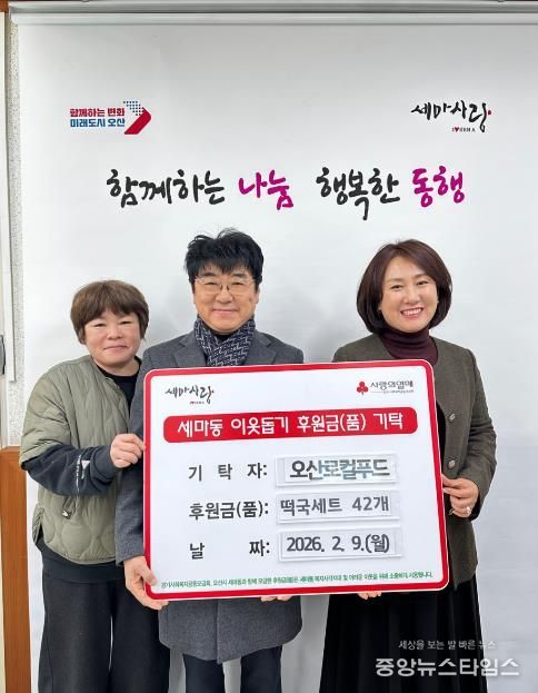 (중앙뉴스타임스 = 방재영 기자) 오산시 세마동 행정복지센터는 지난 9일 오산로컬푸드로부터 관내 복지사각지대 가정을 지원하기 위한 떡국 세트 42개(약 100만 원 상당)를 기탁받았다고 밝혔다.