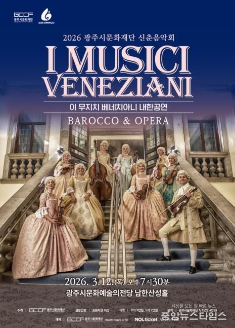 (중앙뉴스타임스 = 이광운 기자) (재)광주시문화재단은 2026년 신춘음악회로 이탈리아 베네치아니를 기반으로 활동해온 바로크앙상블 〈이 무지치 베네치아니(I Musici Veneziani) 내한공연 – Barocco & Opera〉를 개최한다. 이번 공연은 베네치아 황금시대의 음악과 문화를 무대 위에 생생히 재현하며, 관객들에게 클래식을 통한 특별한 시간여행을 선사할 예정이다.