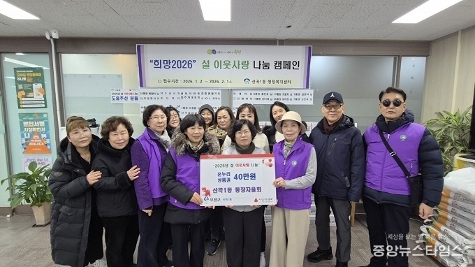 (중앙뉴스타임스 = 방재영 기자) 인천 부평구 산곡1동은 지난 9일 통장자율회로부터 ‘2026 설 이웃사랑 나눔’을 위한 온누리상품권 40만 원을 전달받았다고 밝혔다.