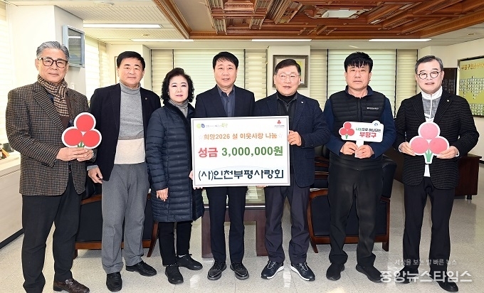 (중앙뉴스타임스 = 방재영 기자) 인천 부평구는 지난 9일 사단법인 인천부평사랑회로부터 ‘희망2026 설 이웃사랑 나눔’ 성금 300만 원을 전달받았다고 밝혔다.