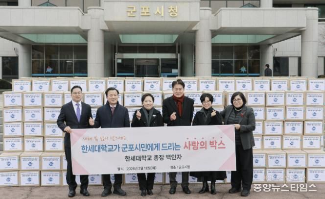 (중앙뉴스타임스 = 방재영 기자) 유난히 추운 겨울이지만, 군포시에는 이웃을 향한 정성이 모여 훈훈한 설 명절 분위기가 피어나고 있다. 한세대학교는 10일 지역 내 취약계층의 넉넉한 명절을 위해 ‘사랑의 희망박스’ 350세트를 군포시에 전달하며 상생의 가치를 실천했다.