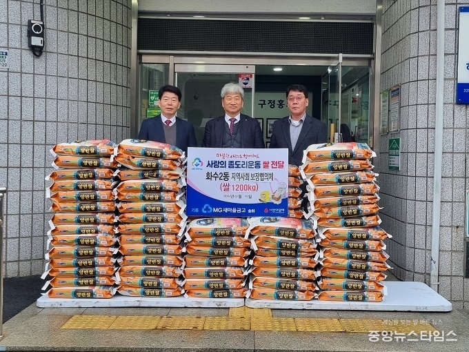 (중앙뉴스타임스 = 방재영 기자) 인천 동구 화수2동(동장 남윤동)에 소재한 송화새마을금고(이사장 장일섭)는 지난 10일 화수2동 행정복지센터에서 설을 맞아 쌀 1천200kg 기탁식을 열었다고 밝혔다.