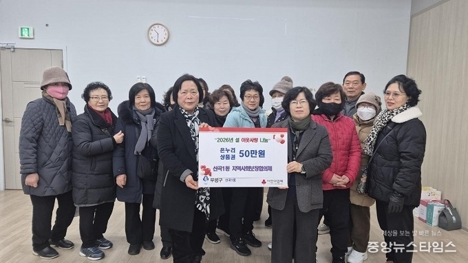 (중앙뉴스타임스 = 방재영 기자) 인천 부평구 산곡1동은 지난 10일 산곡1동 지역사회보장협의체로부터 ‘2026 설 이웃사랑 나눔’을 위한 온누리상품권 50만 원을 기탁받았다고 밝혔다.