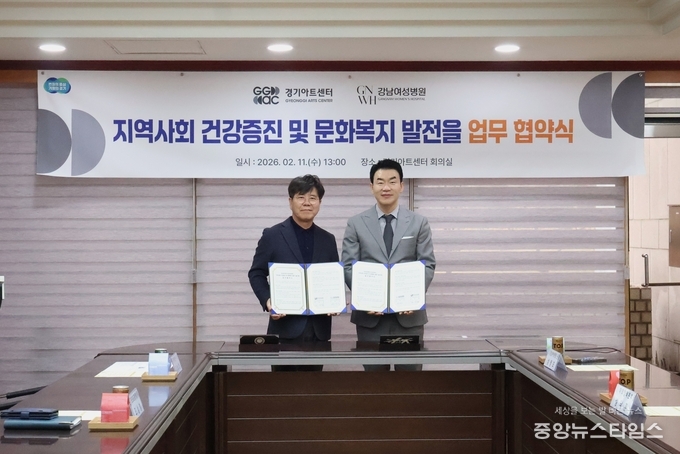 이날 오후 1시, 경기아트센터 김상회 사장, 강남여성병원 성영모 병원장 등 양 기관의 관계자들이 참석한 가운데 진행됐으며, 문화예술을 매개로 한 건강 증진과 사회공헌 협력 방안에 대해 뜻을 모았다.