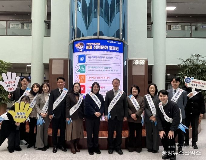 이번 캠페인은 내부 공직기강을 확립하고 교육청을 방문하는 시민에게 인천교육의 ‘5대 청렴 문화’를 알려 지역사회 전반에 청렴 의식을 확산시키고자 마련했다.