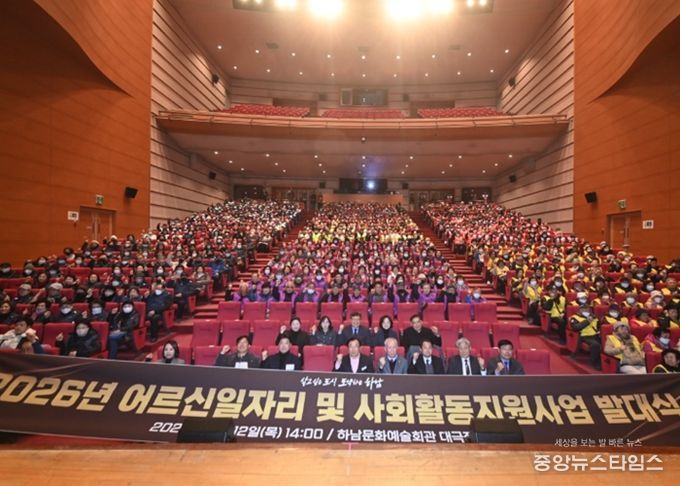 (중앙뉴스타임스 = 방재영 기자) 하남시는 12일 하남문화예술회관 대극장(검단홀)에서 주요 내빈과 노인일자리·사회활동 지원사업 참여자 620여 명이 참석한 가운데 ‘2026년 노인일자리 및 사회활동 지원사업 발대식’을 개최했다.